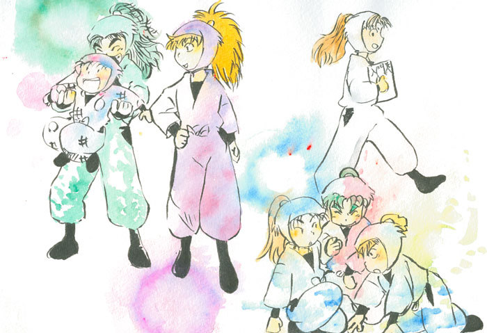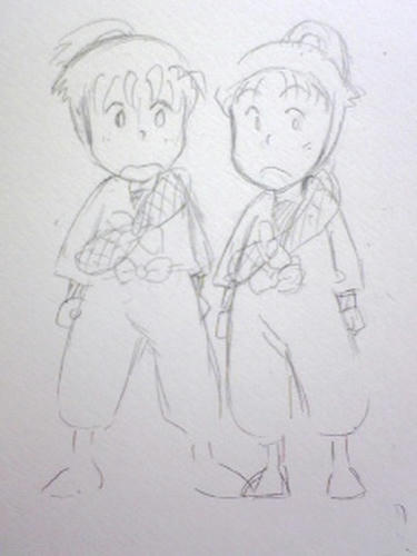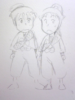 佐吉は三木っこ。団蔵は潮江っこ。左門はよく遊んでくれますが、左門が遊んでくれるときは末二人は仲良し(?)